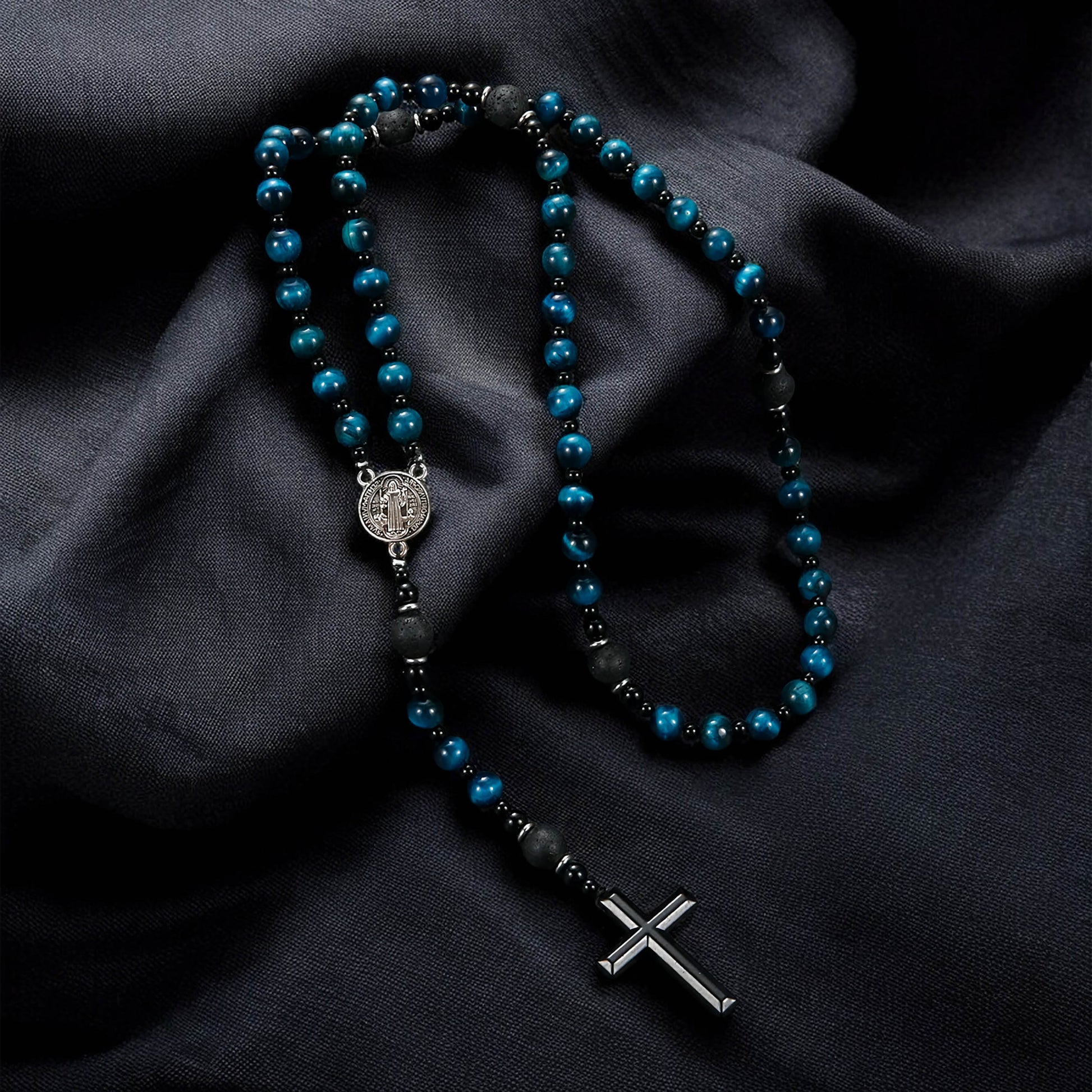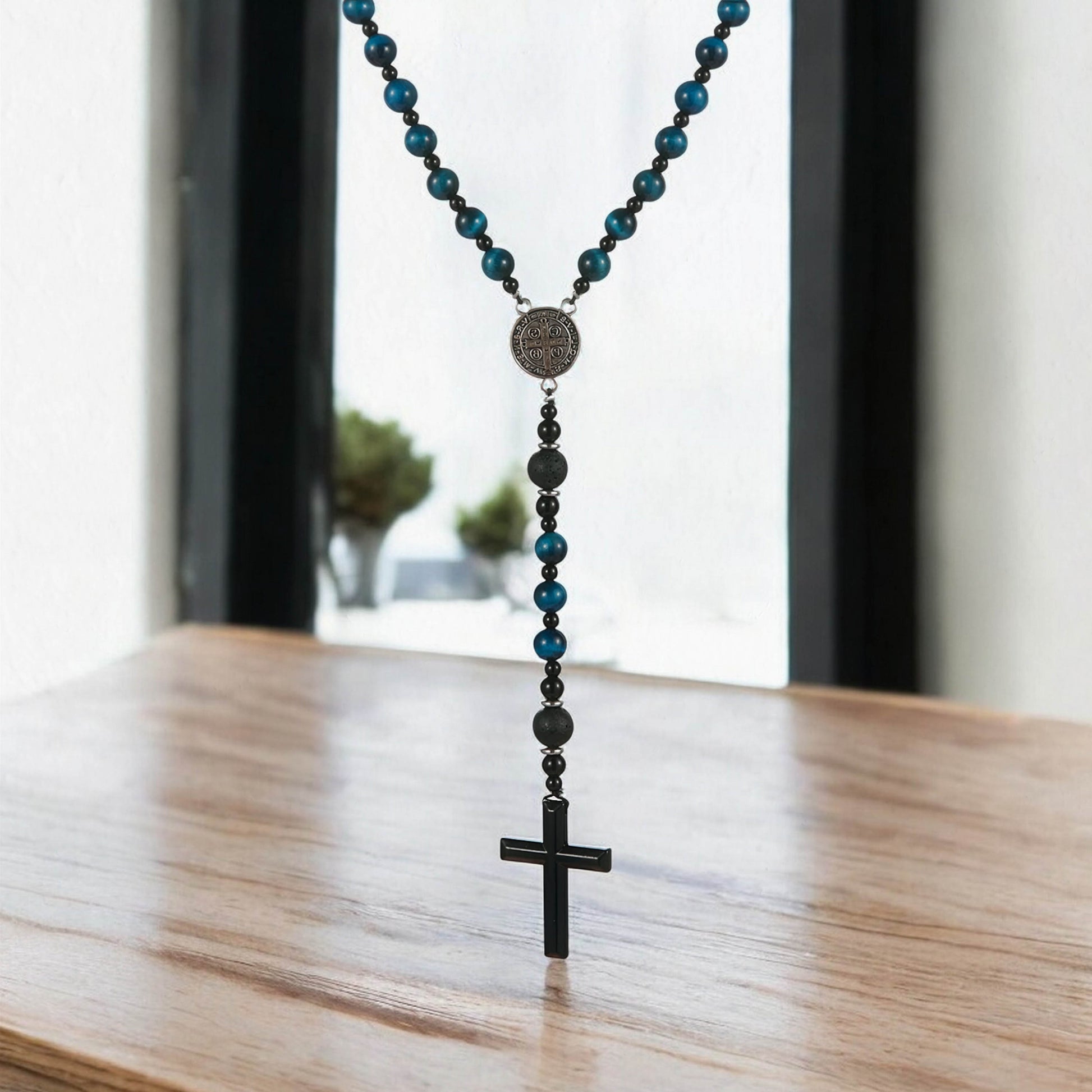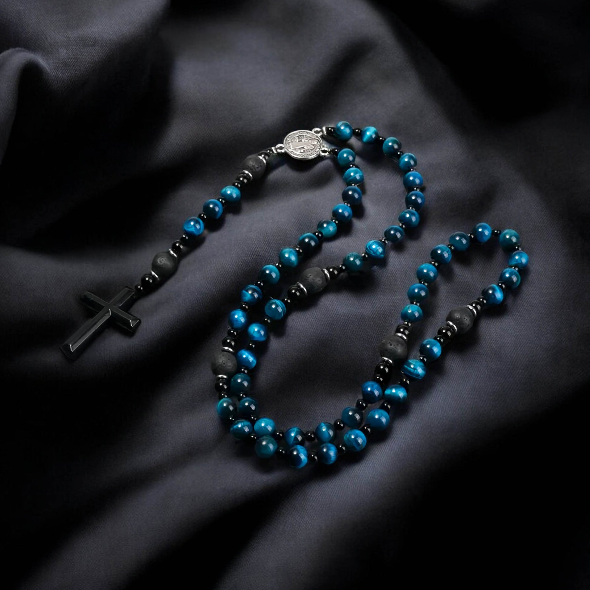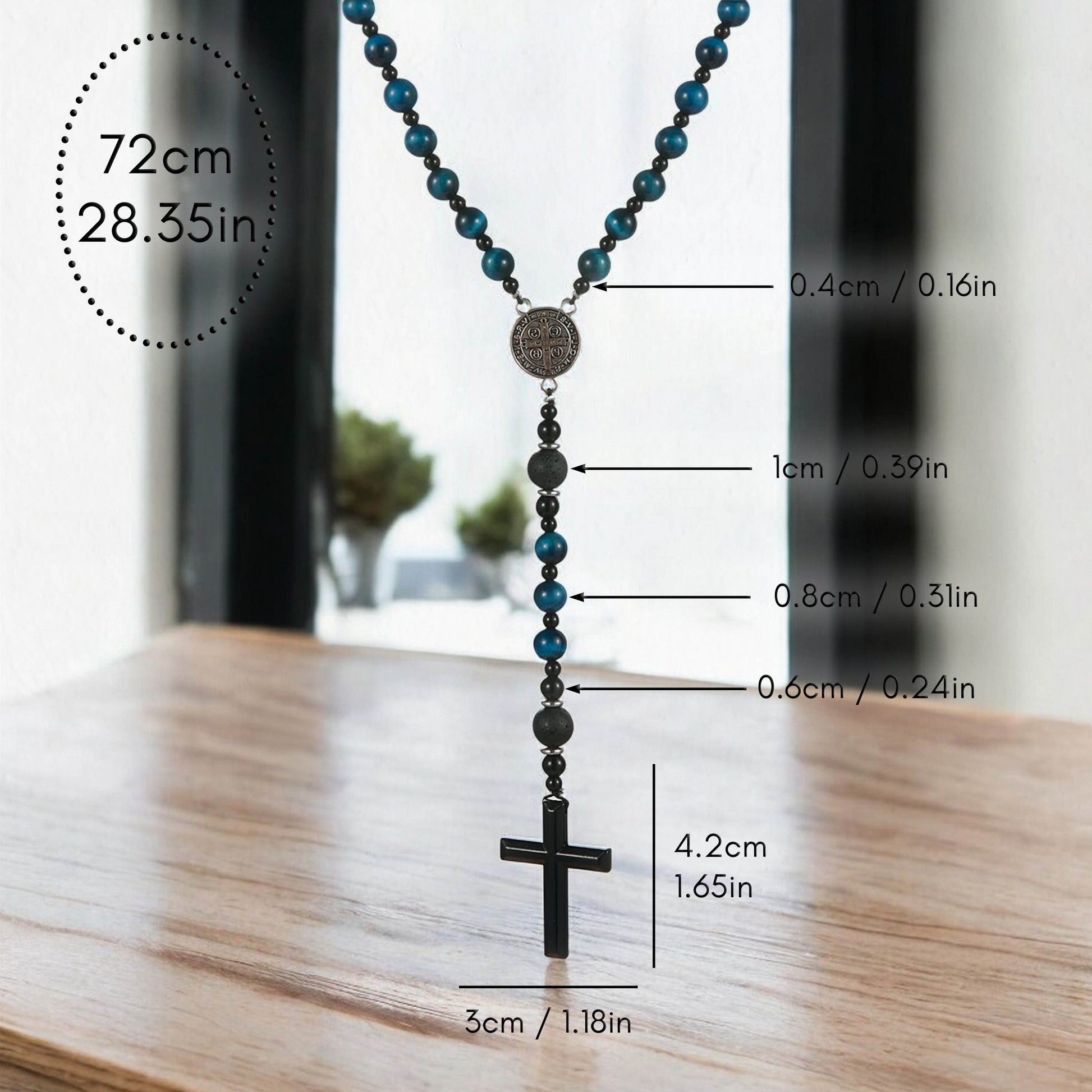 ► Embrace the power of mindful devotion with our beautifully crafted rosaries, made from high-quality Blue Tiger's Eye, Hematite and Lava Stone.