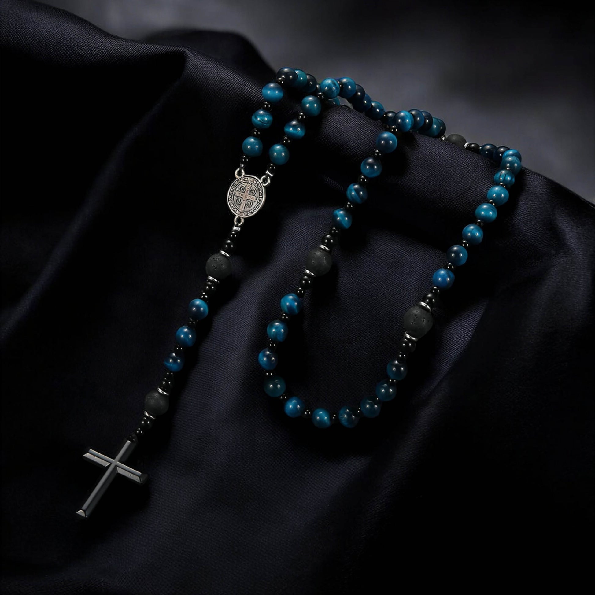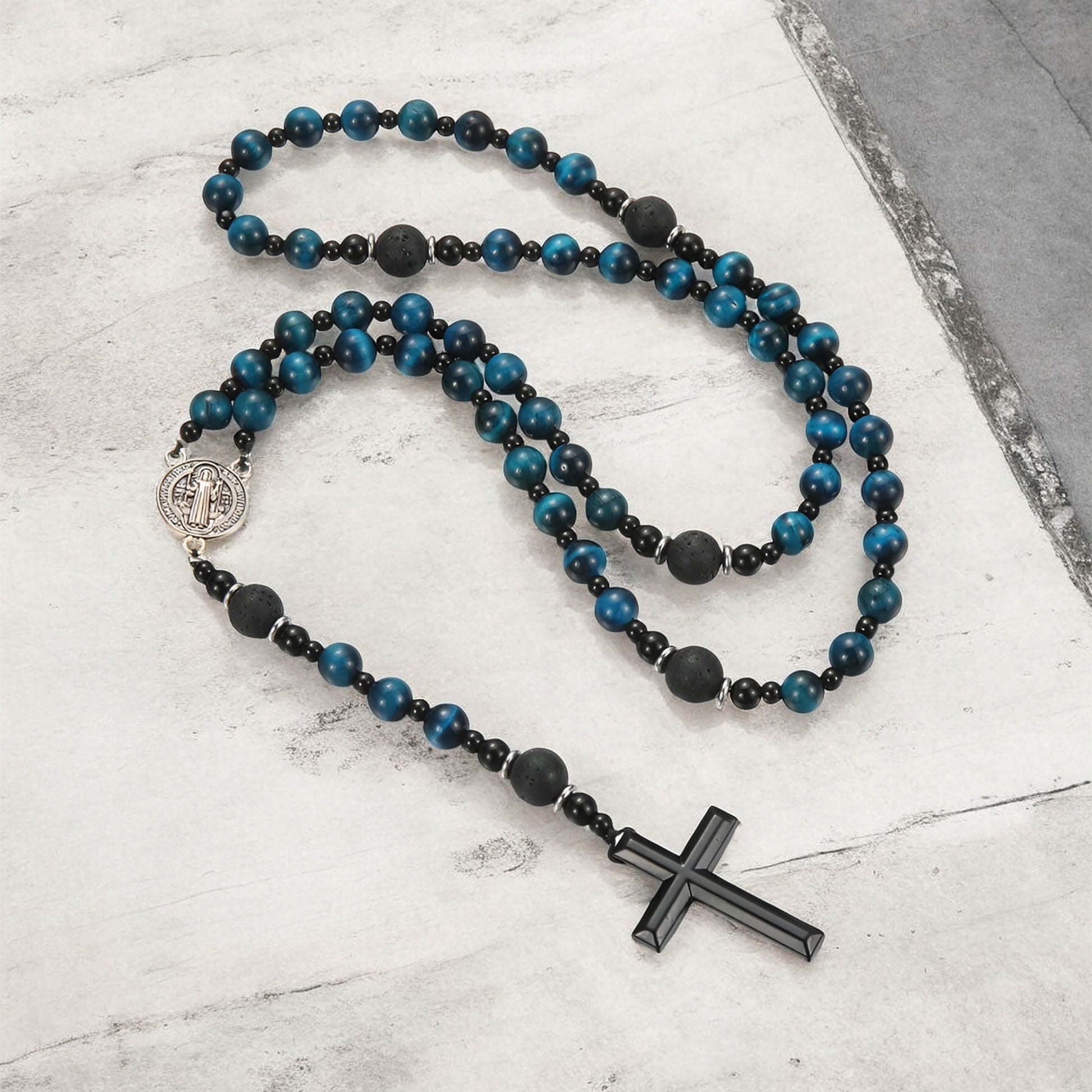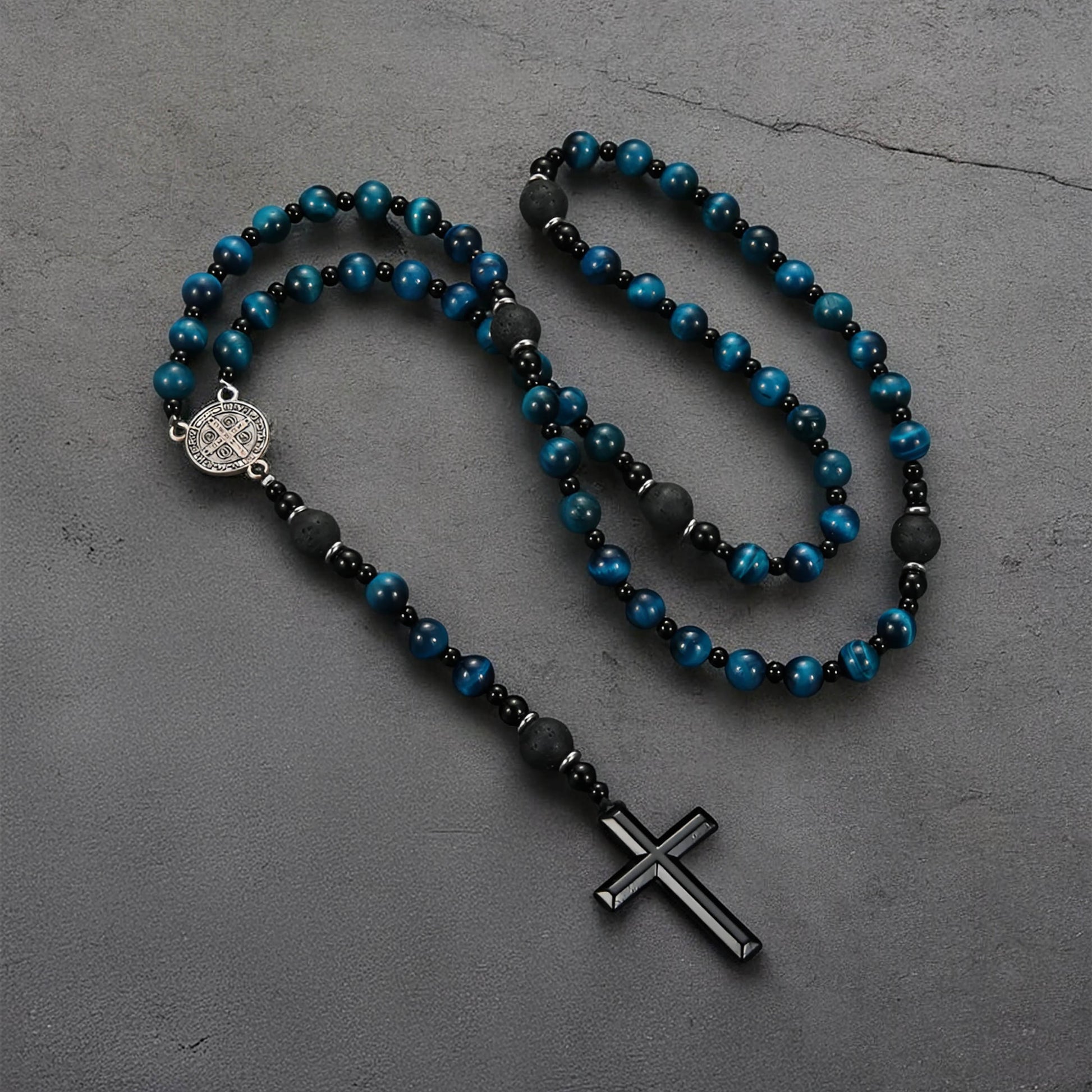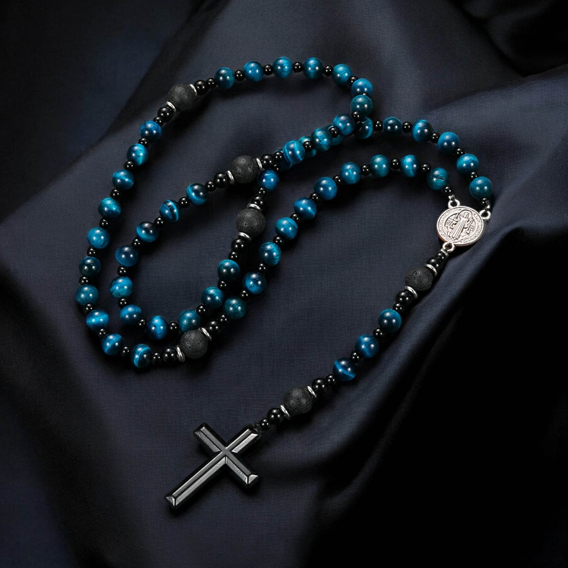 ► Embrace the power of mindful devotion with our beautifully crafted rosaries, made from high-quality Blue Tiger's Eye, Hematite and Lava Stone.