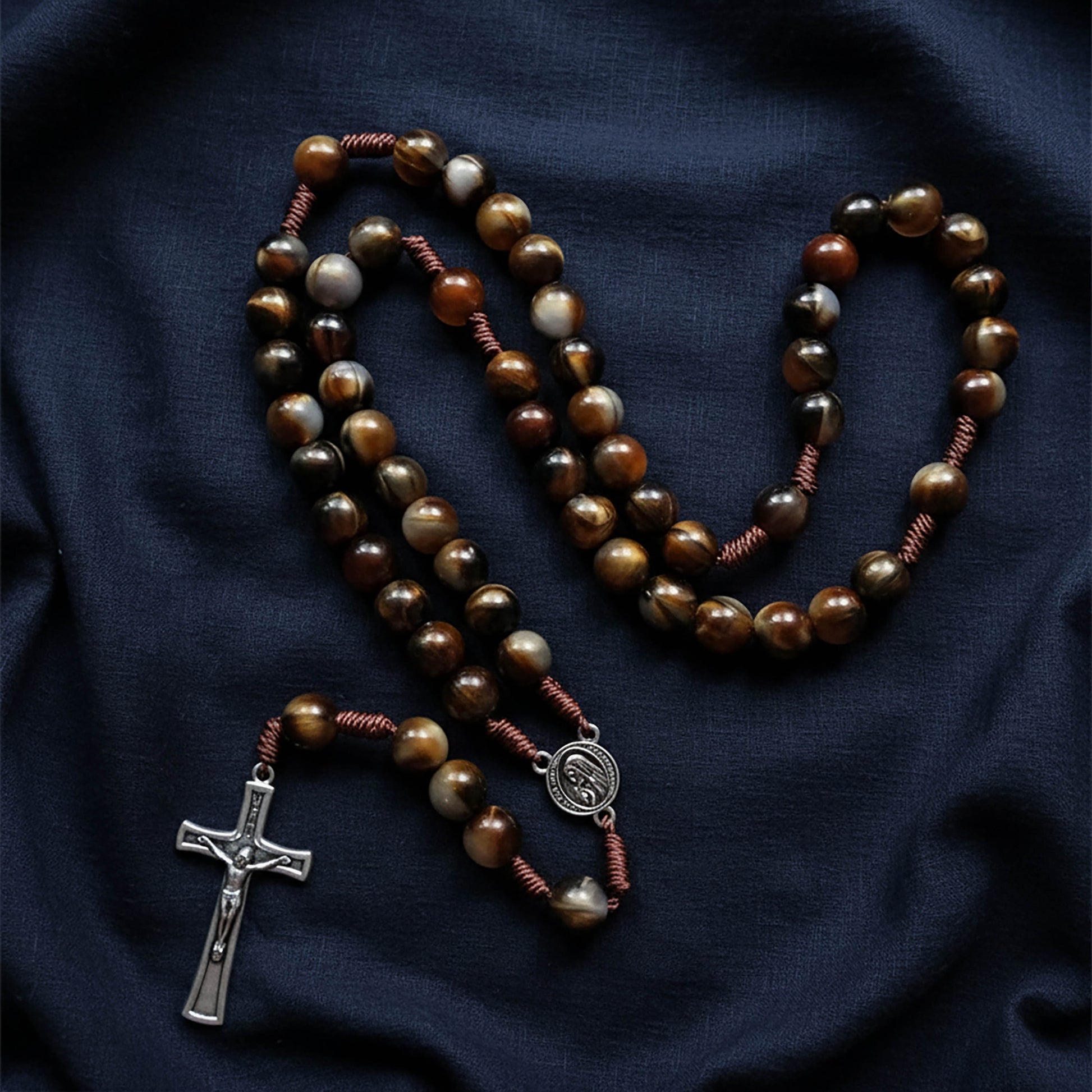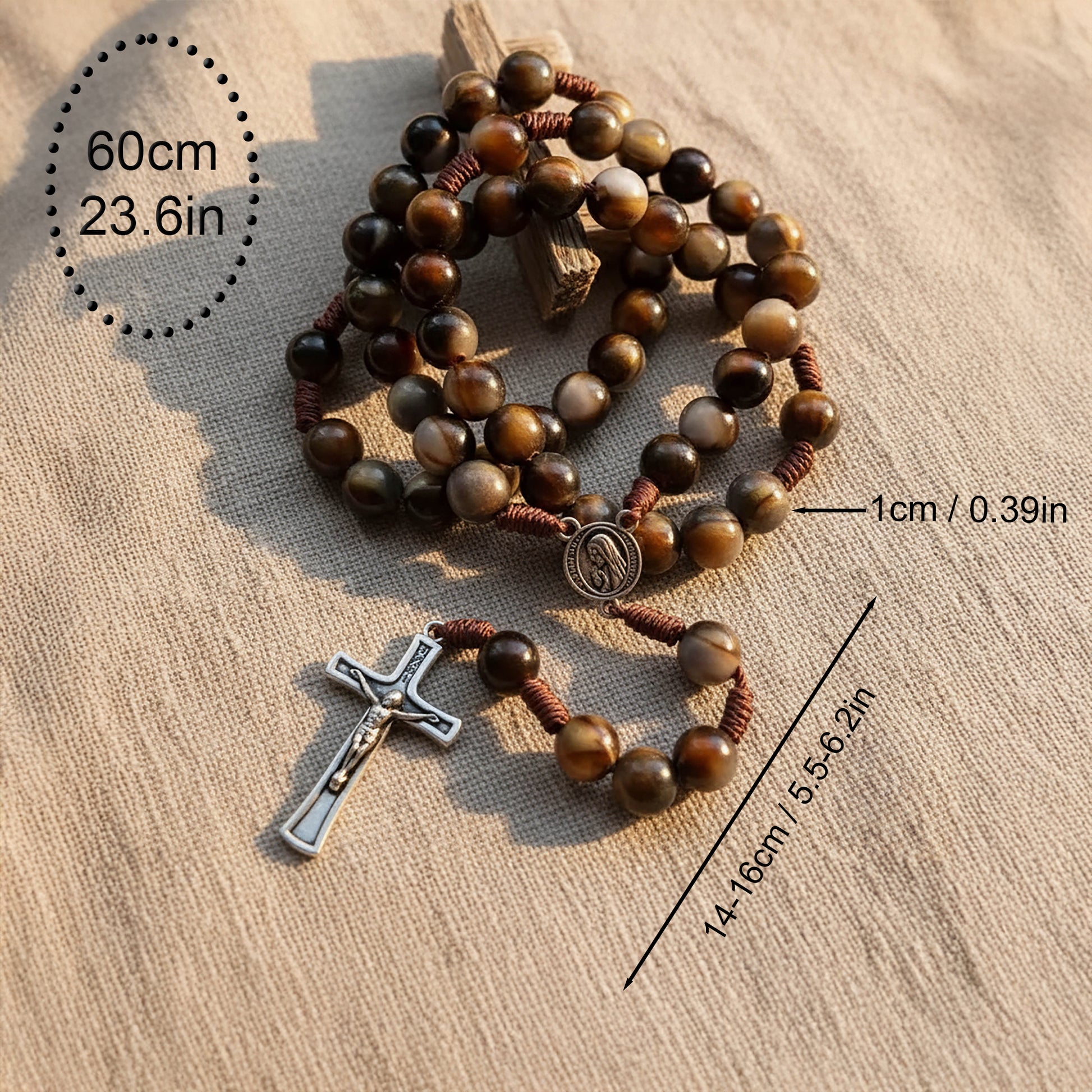 • Brown Rosary Necklace Our Lady, Prayer Beads Rosary Beaded Cross Pendant Necklace, Mens Rosary Necklace, Gift for Her, Catholic Rosary Chapelet •