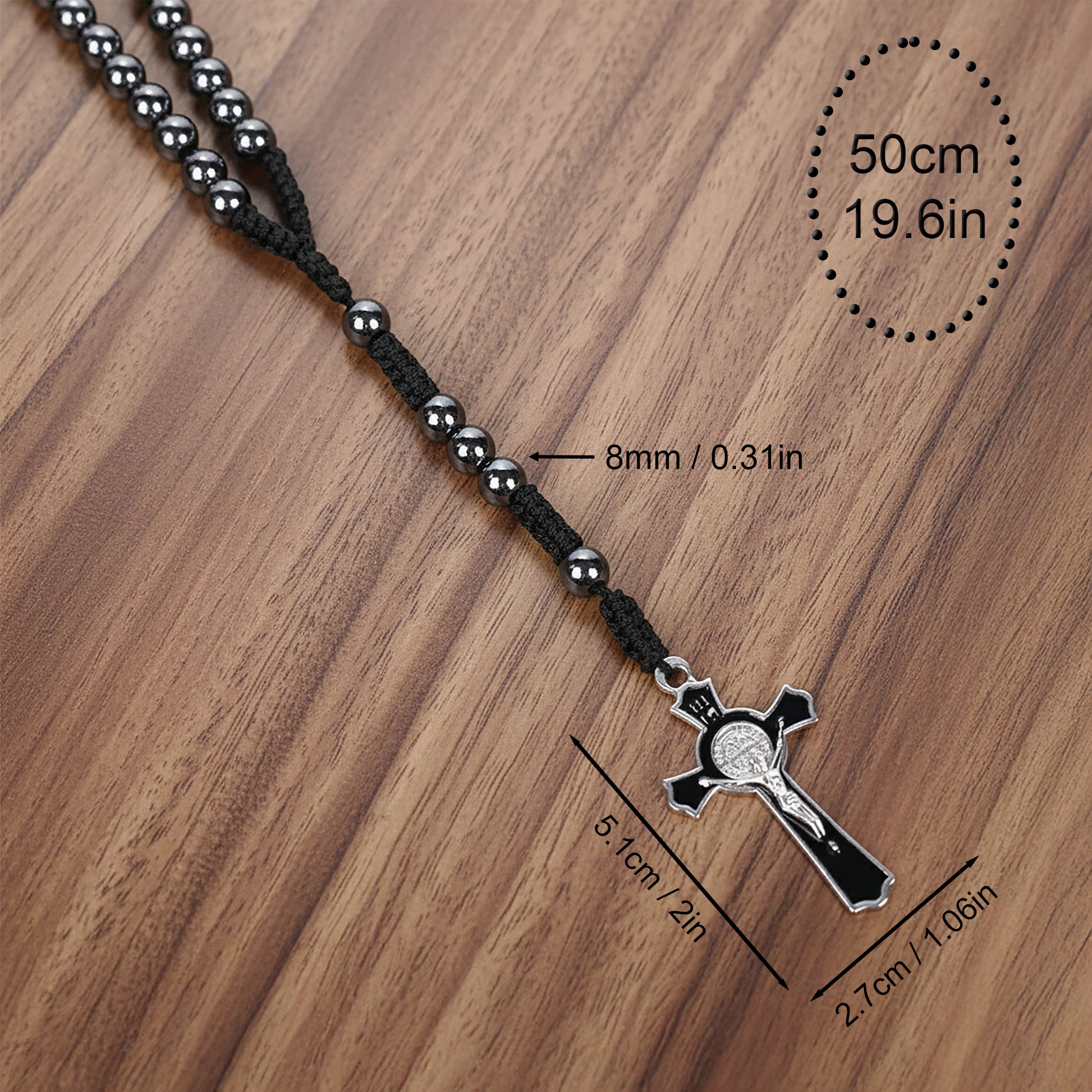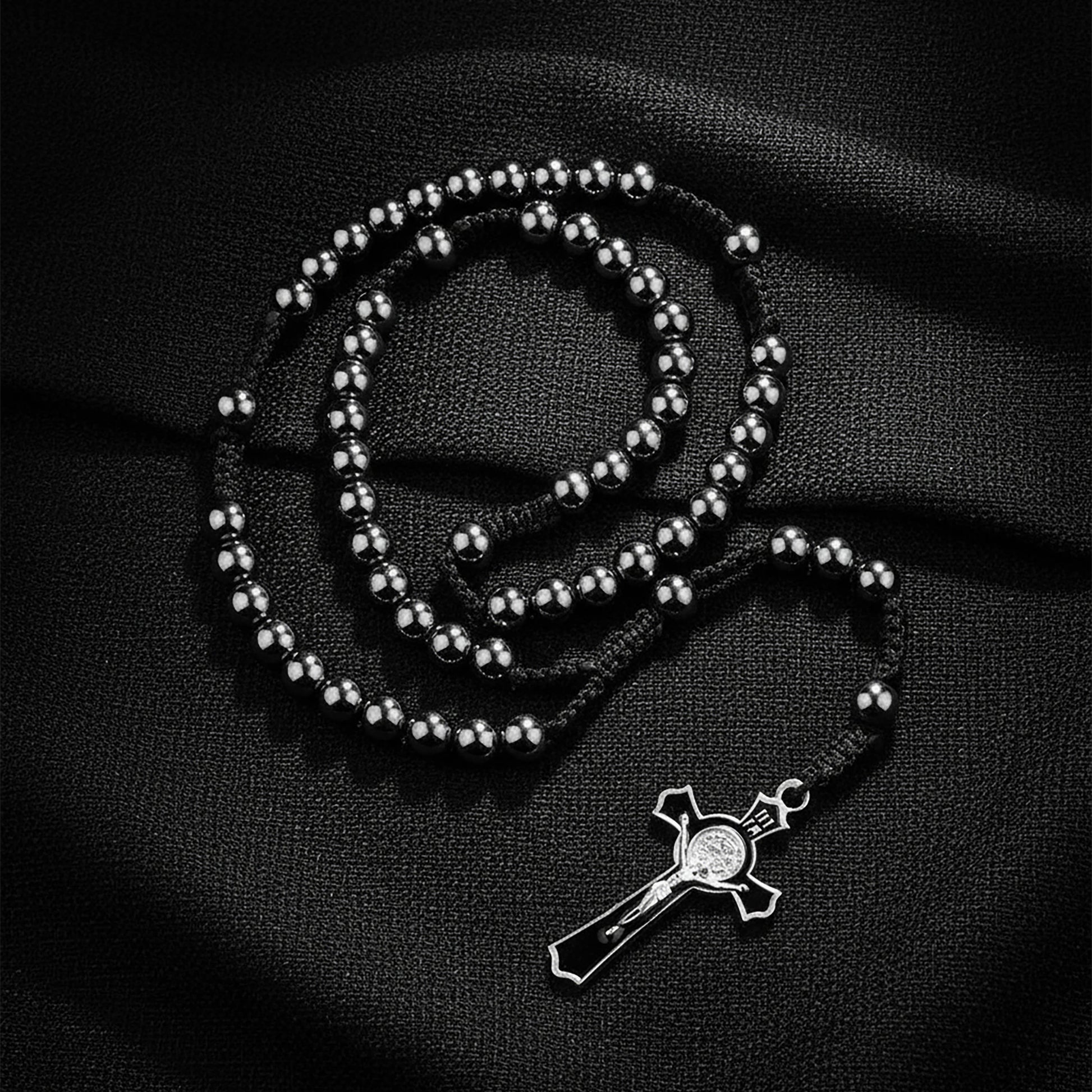 • Hematite Black Rosary Necklace, Black Rosary Beads, Cross Pendant Necklace Prayer Beads, Men's Rosary, Catholic Gift for Her •